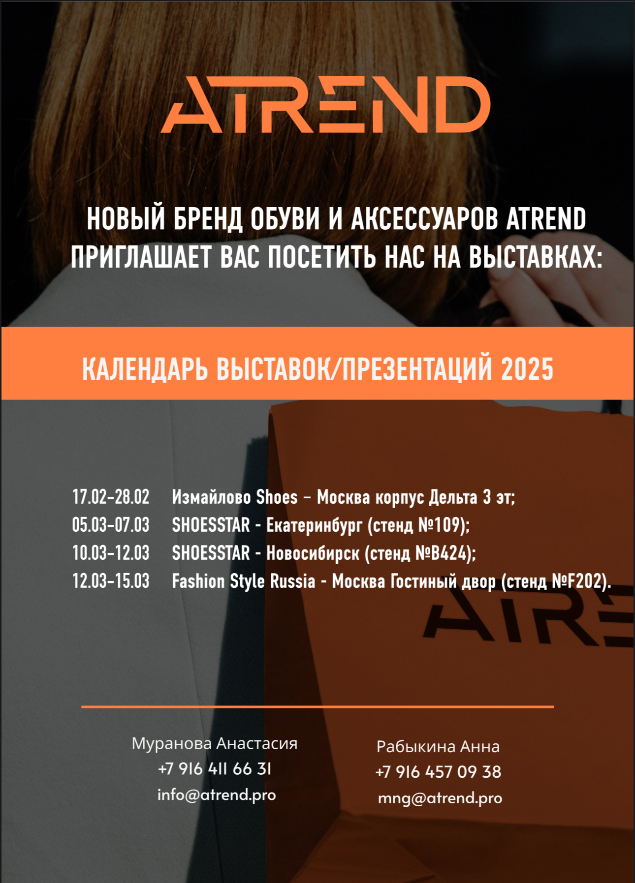 Российский бренд обуви и аксессуаров приглашает байеров и оптовых покупателей лично познакомиться с новой коллекцией сезона Осень-Зима 2025/26 на главные обувные выставки в Москве, Екатеринбурге и Новосибирске!